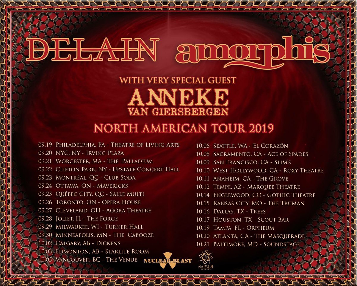 #Amorphis &@delainmusic co-headliner tour w/@AnnekeAnnique in fall 2019