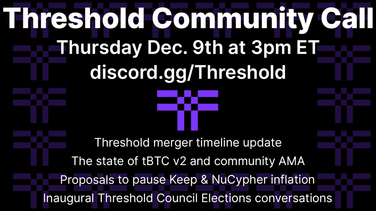 Threshold Community Call and Updates When: Dec 9th, 3pm ET Where: http://Discord.gg/Threshold pic.twitter.com/vZqXg1KcOw