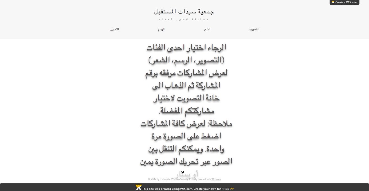 تمت اضافة جميع المشاركات ورابط التصويت في موقع الجمعية: https://haifaalrdahi.wixsite.com/fsworiginal الأن يمكنكم استعارض جميع المشاركات والتصويت عليها