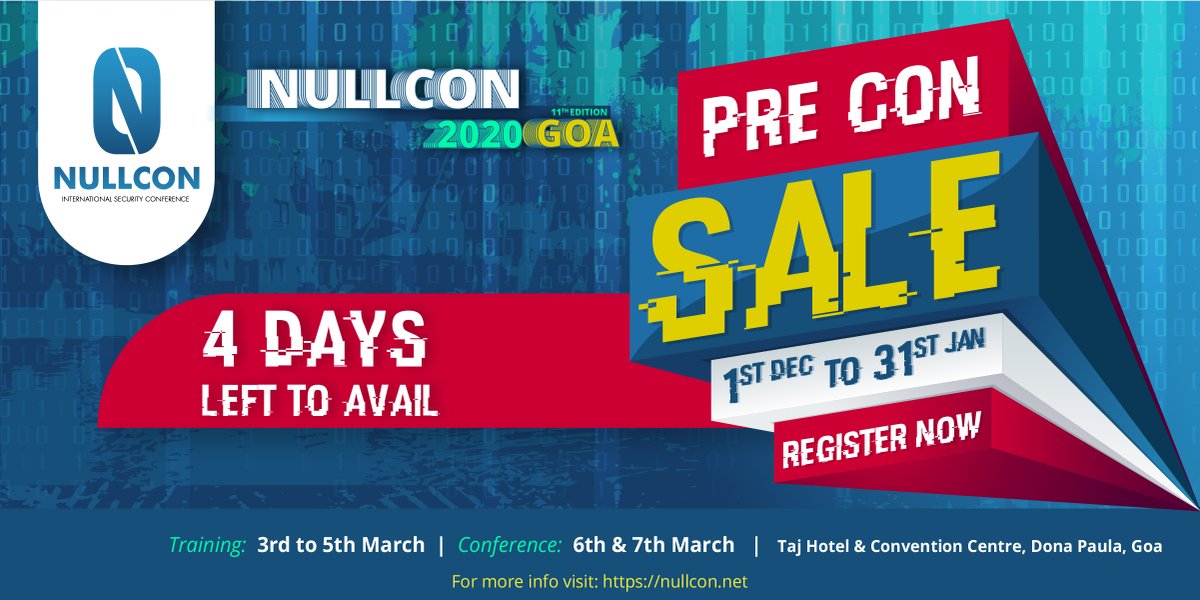 Last day to avail pre-con discount tickets to #Nullcon2020!