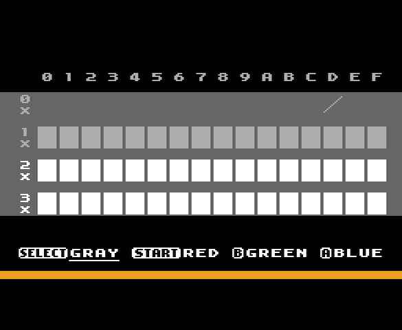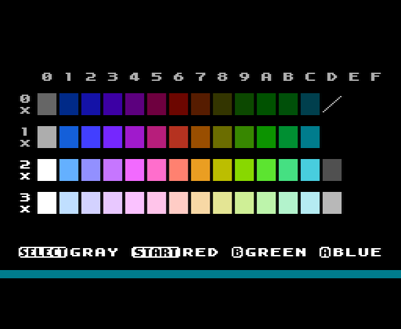 『color_test』を2022-04-16版に更新。 ・処理を見直して色の表の行間を狭めた ・押したボタンに対応する色名に下線を引く処理を追加 前者はPPUへの理解が進んで最適化ができたので。後者はグレーや色強調が効かない環境でも、ボタンを押していることが分かるようにするため。 https://www.dropbox.com/s/26moyl42c1p2rxb/color_test_2022-04-16.zip?dl=0 …pic.twitter.com/AruEmqE15j