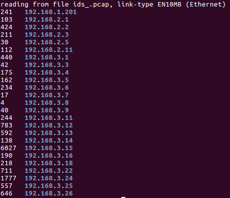 #TrasteaJugando con#tcpdump &&#sort tcpdump -r ids_.pcap -w - | argus -r - -AZJmR -w - | ra -r - -nnn -s saddr | grepcidr -s 192.168.0.0/16 | sort -n -t. -k 1,1 -k 2,2 -k 3,3 -k 4,4 | uniq -c | head -n25 | column -tpic.twitter.com/K8kWYK7YLB