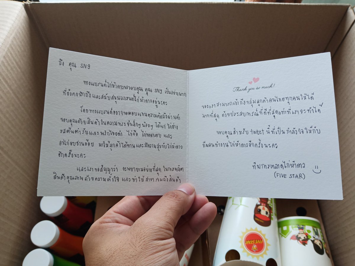 ไก่ย่างห้าดาวก็คือเล่นใหญ่มาก! จากที่ถามถึงนาง นางเลยส่งของขวัญมาให้กล่องหนึ่ง ตอนแรกก็เข้าใจว่าเออ ของสมมนาคุณเบาๆ set เล็กๆ อร่อยๆ แต่พอพี่เขามาส่งทีก็คือช็อกก ช็อกมากกก !!! คถนางแล้วได้กินนาง คือมีความสุขมากๆ ขอบคุณนะ PS สั่งไก่ย่างผ่าน App ส่งอาหารชั้นนำได้ทั้งหมดแล้วนะ!pic.twitter.com/0BeqKm4x0P