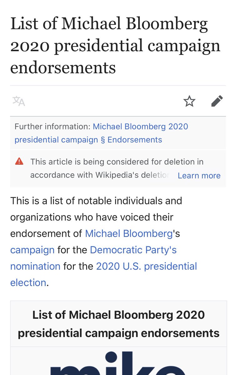 Here is a list of endorsements for #mike2020 @MikeBloomberg