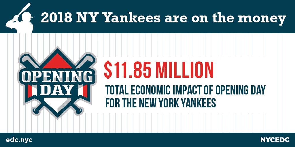 @NYCEDC announces economic impact of $11.9 million for 2018@Yankees#OpeningDay game: http://bit.ly/2Jlc6zG pic.twitter.com/U9W2b9VBcK