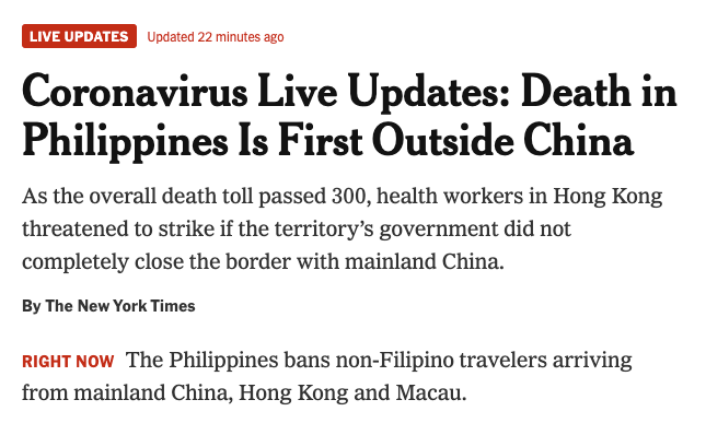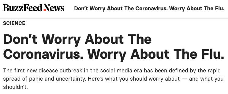The coronavirus coverage 1) Chinese govt downplayed it early 2) Courageous Caijin journalists publish what’s actually happening, get censored 3) NYT runs surprisingly good, apolitical coverage 4) But other news orgs act like Chinese government by downplaying it, equating to flu!pic.twitter.com/GZ6FYoZRPv