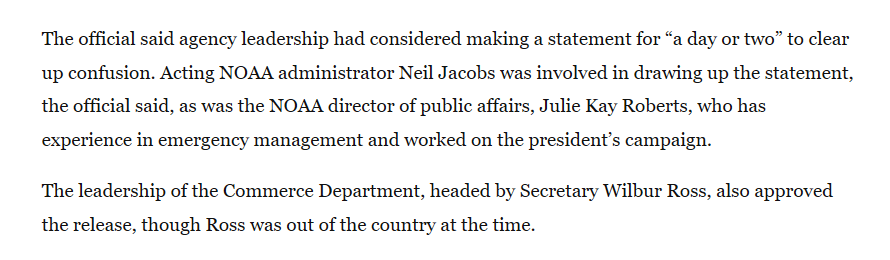 Pet peeves: WaPo doesn’t name the top NOAA official who sent the email or explain why they can’t; they just shift gears into the passive voice. They also don’t provide a link to a copy of the email they said they obtained.