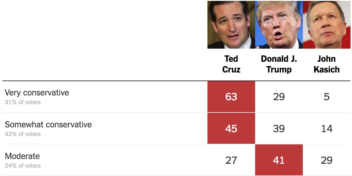 In Wisconsin, Trump did well with moderates while Cruz took the conservative vote: http://nyti.ms/25JWyLD pic.twitter.com/mdaXjmiqgO