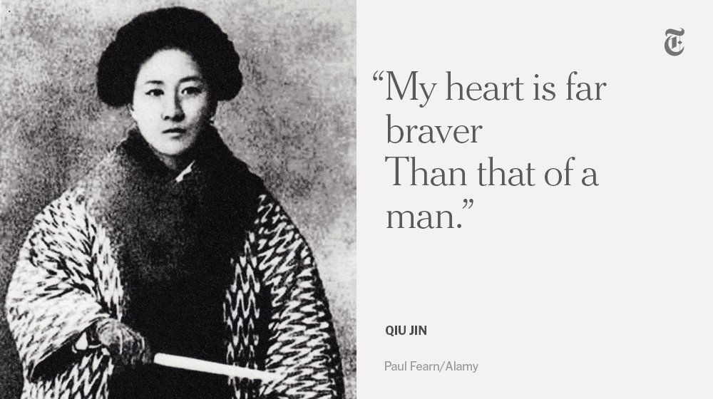 Qiu Jin 1875-1907 With her passion for wine and bomb making, Qiu Jin was unlike most women born in late 19th-century China. She is often referred to as “China’s Joan of Arc.” http://nyti.ms/2FliXL3 pic.twitter.com/2zwk3iIlZU