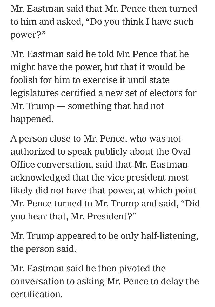 NEW: Trump and Pence haven’t spoken since Weds. Trump has declined to order flags flown at half staff on exec branch buildings like the White House. Pence refused to go along with Secret Service requests to flea Capitol for safety on Weds. w/