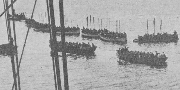 #GallipoliFlashback first wave of Anzacs start to board landing boatspic.twitter.com/yHt1vGn8Uw