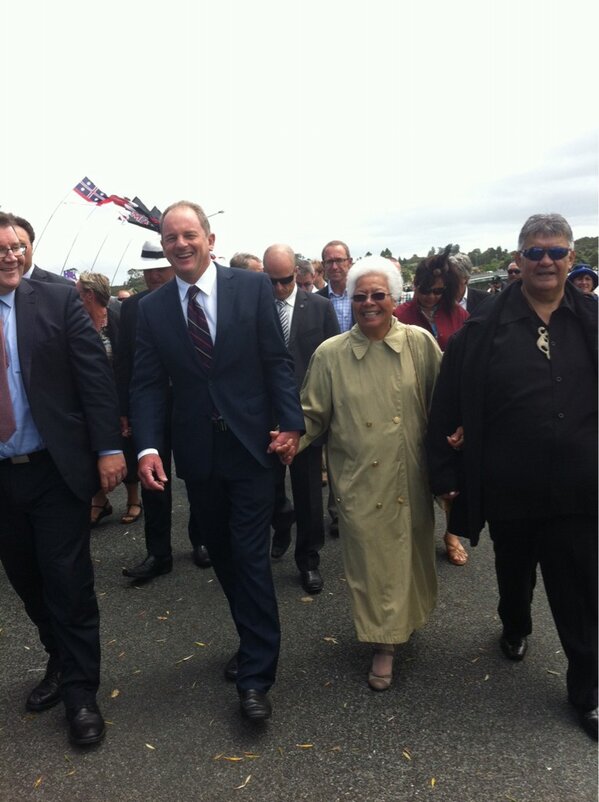 Labour Leader @DavidShearerMP being escorted onto the maraepic.twitter.com/l6uqUH7q