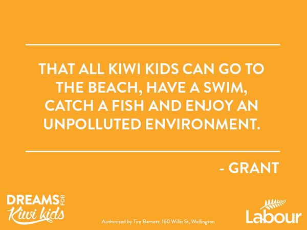 Grant's #DreamsForKiwiKids are for an unpolluted environment and lots of fun for kids!pic.twitter.com/0hpQKSIU2X