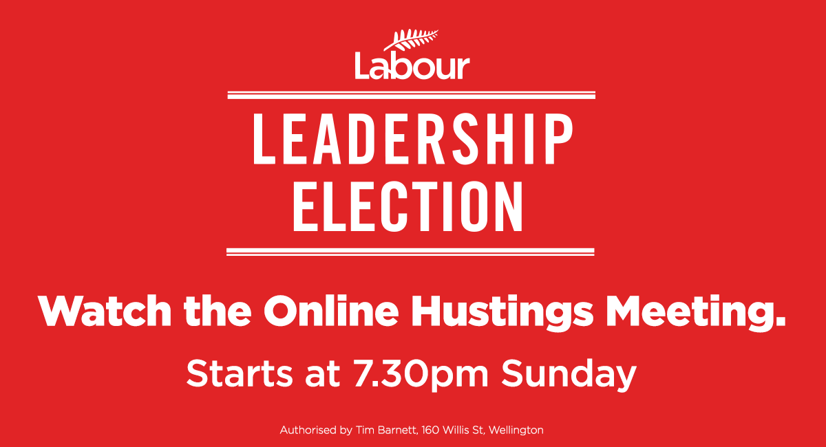 The Online Hustings Meeting starts at 7.30pm. Join us and watch online here: http://www.labour.org.nz/onlinehustings pic.twitter.com/TCaC9QXpdG