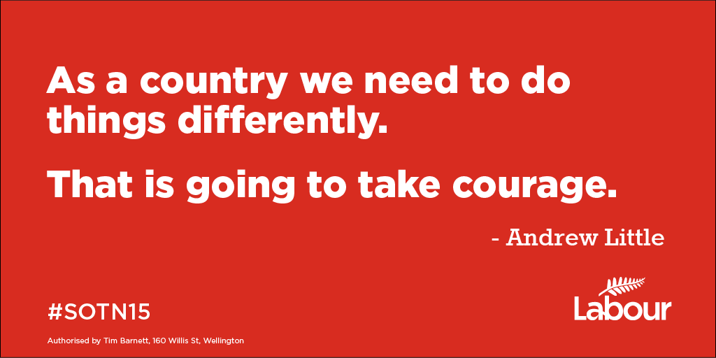.@AndrewLittleMP says we need courage and to work together, for a wealthier, fairer New Zealand. #SOTN2015pic.twitter.com/USU46lNqtf
