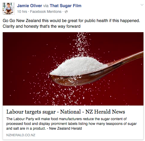 Great to see Government support a sugar tax! @nzlabour @jamieoliver