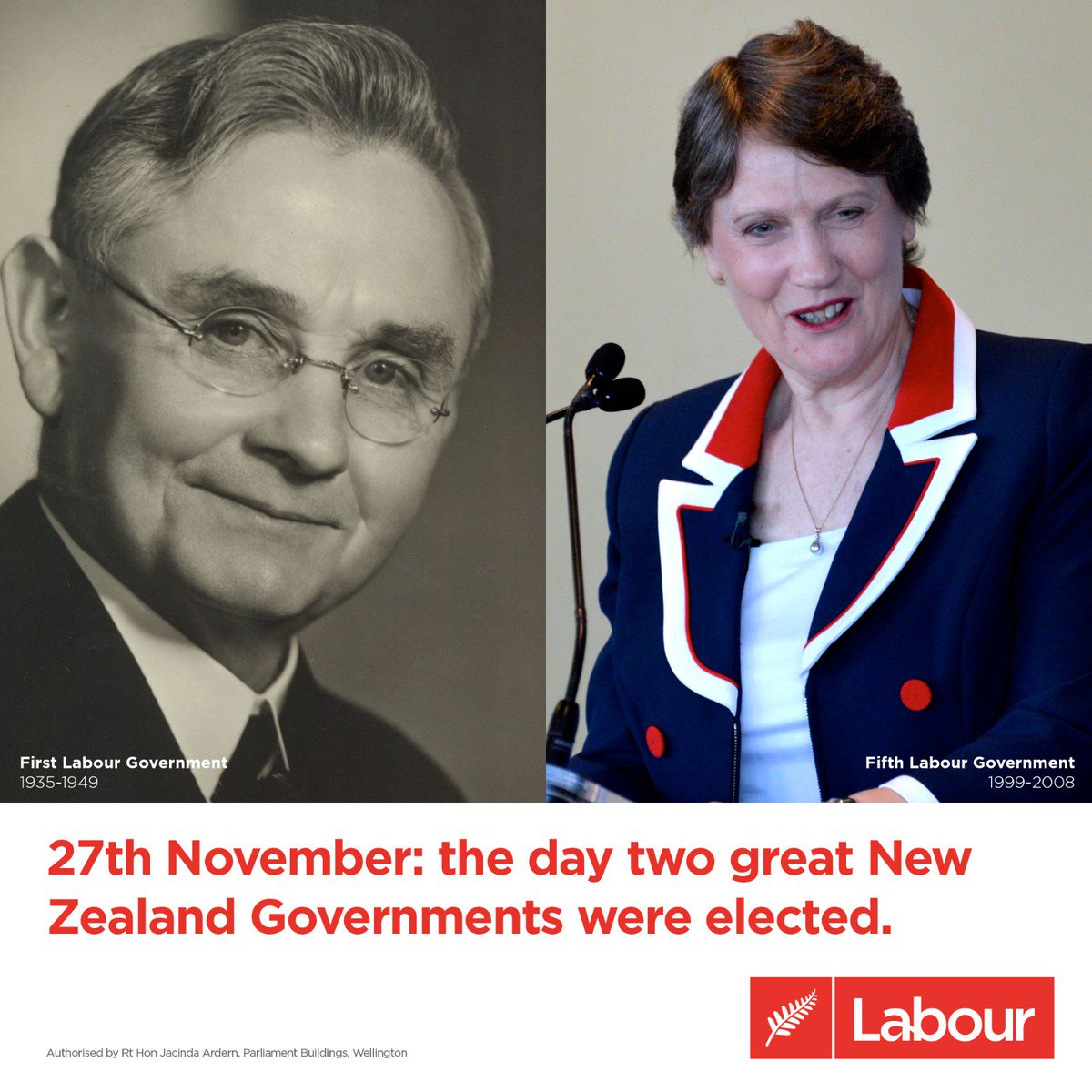 On this day in 1935 and in 1999, NZ voted in Labour governments, led by Michael Joseph Savage & @HelenClarkNZ respectively. Labour has always led positive change in this country & that’s what we’re continuing to do with PM @jacindaardern and the Sixth Labour-led Government!pic.twitter.com/Vw9S6MLJ67