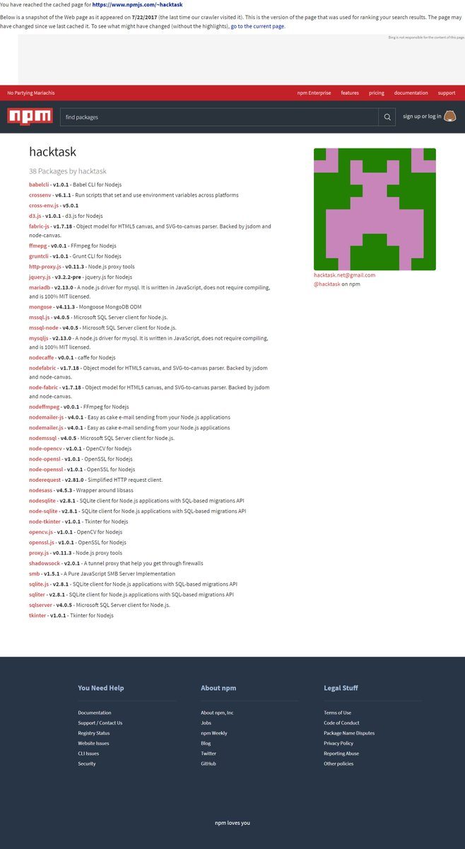 The user has been removed, so, for a reference, here’s the full list of packages that they published:pic.twitter.com/F6KcWgnWcw