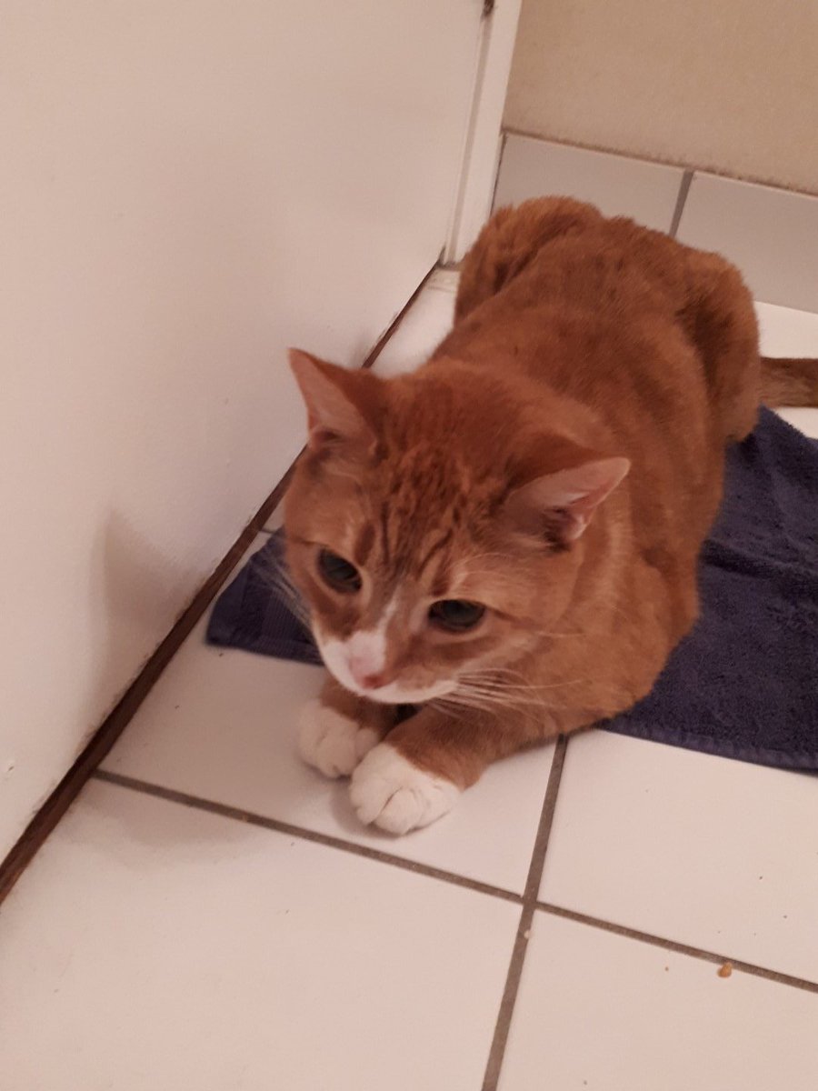 There was a cat in our (fourth floor) apartment hallway meowing away and now he is eating in our bathroom.pic.twitter.com/v1XikGHDco