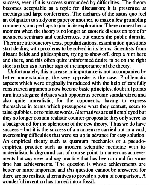 I feel like stemlords/techbros would benefit greatly if they were to read and understand Feyerbend. Their idealization of the scientific process is cult-like and leads to extremely close-minded attitudes esp. towards experiences of minorities