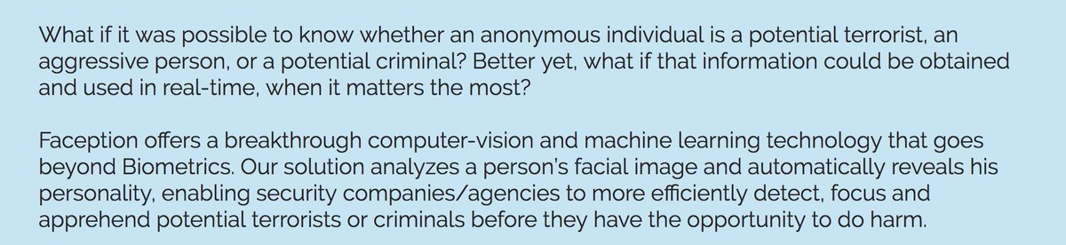 So, the "facial personality analytics" (#phrenology 2.0?) startup Faception claims they can tell criminals and terrorists from facial structure.pic.twitter.com/7e9UApx1B4