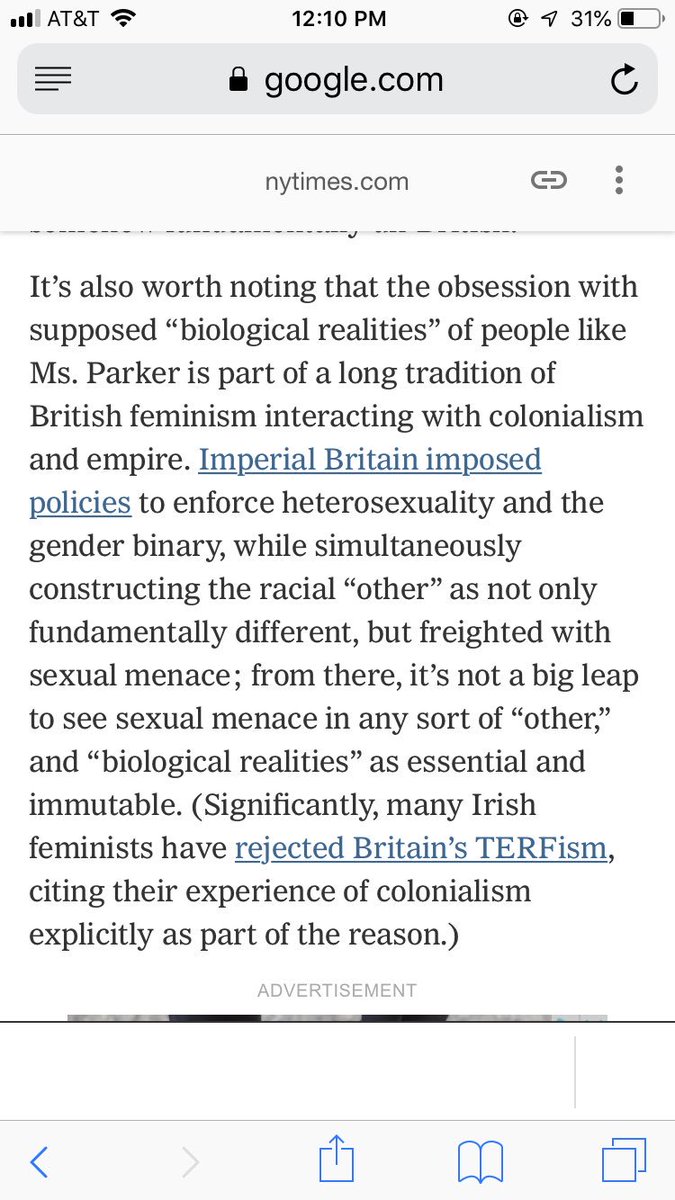 This is denialism about colonialism. It’s actual legacy was a point in the op ed, literally right before the mention of indigenous feminism the TERFs are finding really hilarious. https://www.nytimes.com/2019/02/07/opinion/terf-trans-women-britain.html …pic.twitter.com/OajNMnJa9D