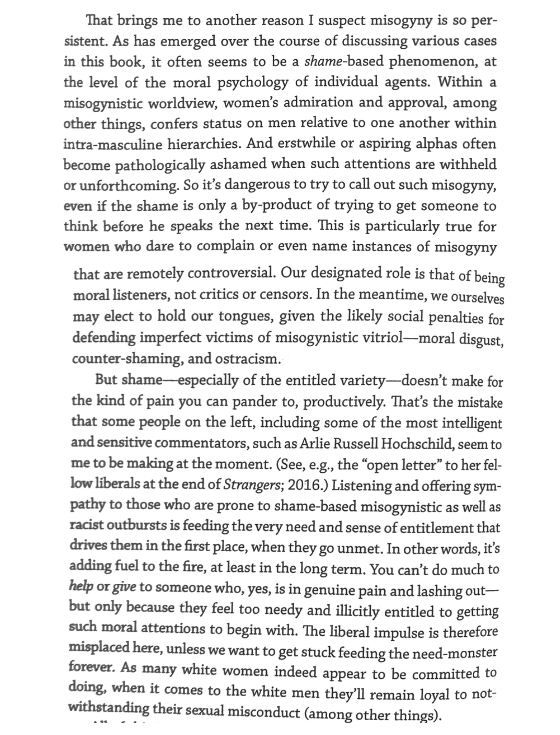 On misogyny as a shame-based phenomenon that trickily eludes sympathy & personal responsibility, from the conclusion of @kate_manne's tour de force DOWN GIRL (2018): "shame—especially of the entitled variety—doesn't make for the kind of pain you can pander to, productively."pic.twitter.com/6aR1QofSBL