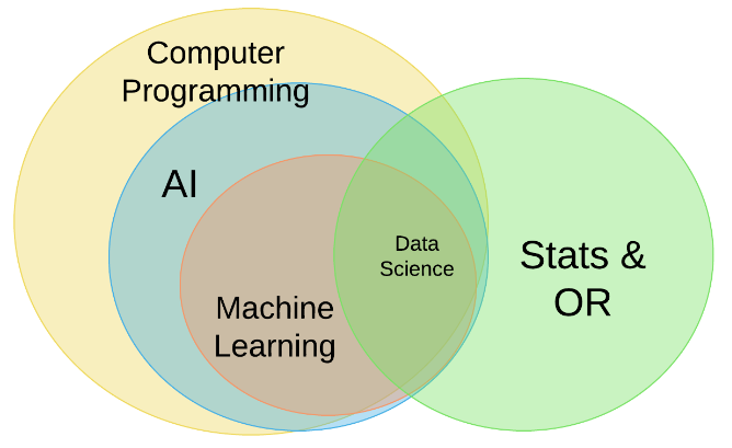 Hey Twitter hive mind, I'm looking for a simple venn diagram that shows the overlapping relation between machine learning, big data and AI. Got any?