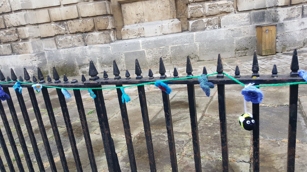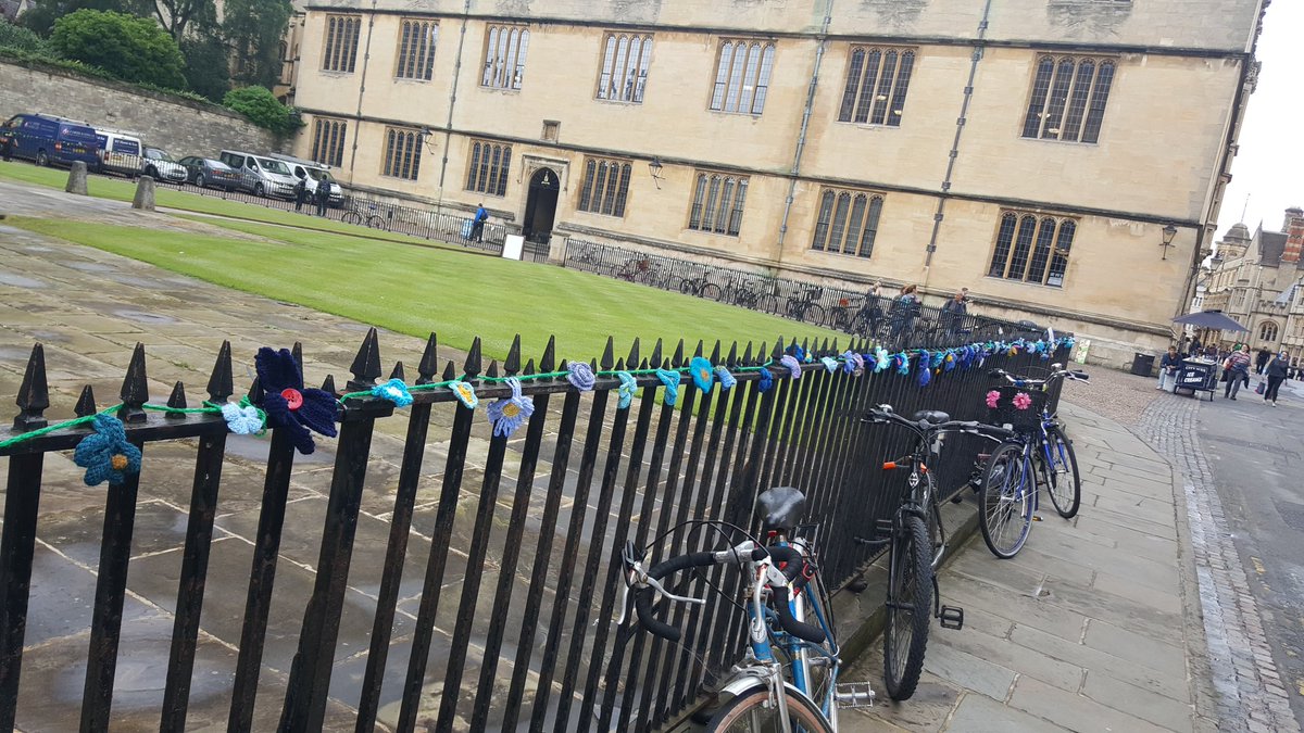 anywayyyyy the knitted flowers are on the black fence (see link) to give you an idea of where I'm standing https://upload.wikimedia.org/wikipedia/commons/b/b6/Radcliffe_Camera_revised,_Oxford.jpg …
