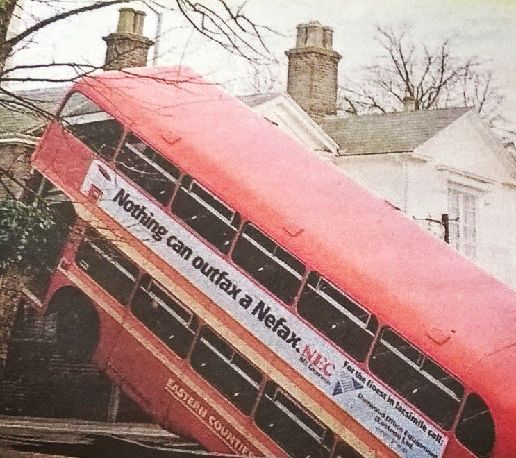 Historians now date the end of the 1980s from the day a red bus advertising fax machines fell down a hole in Norwichpic.twitter.com/1rEHAjrqOu