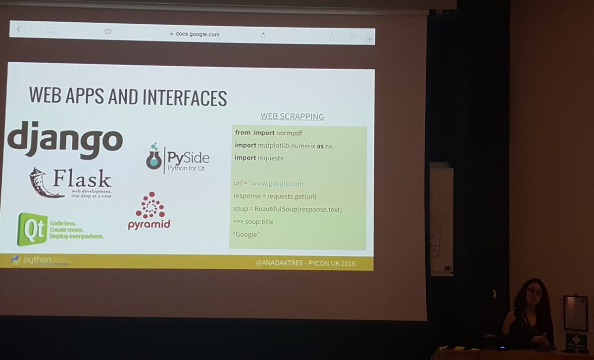 Python makes webscraping turbo easy @anaoaktree #PyConUKpic.twitter.com/lVixhMp0wi