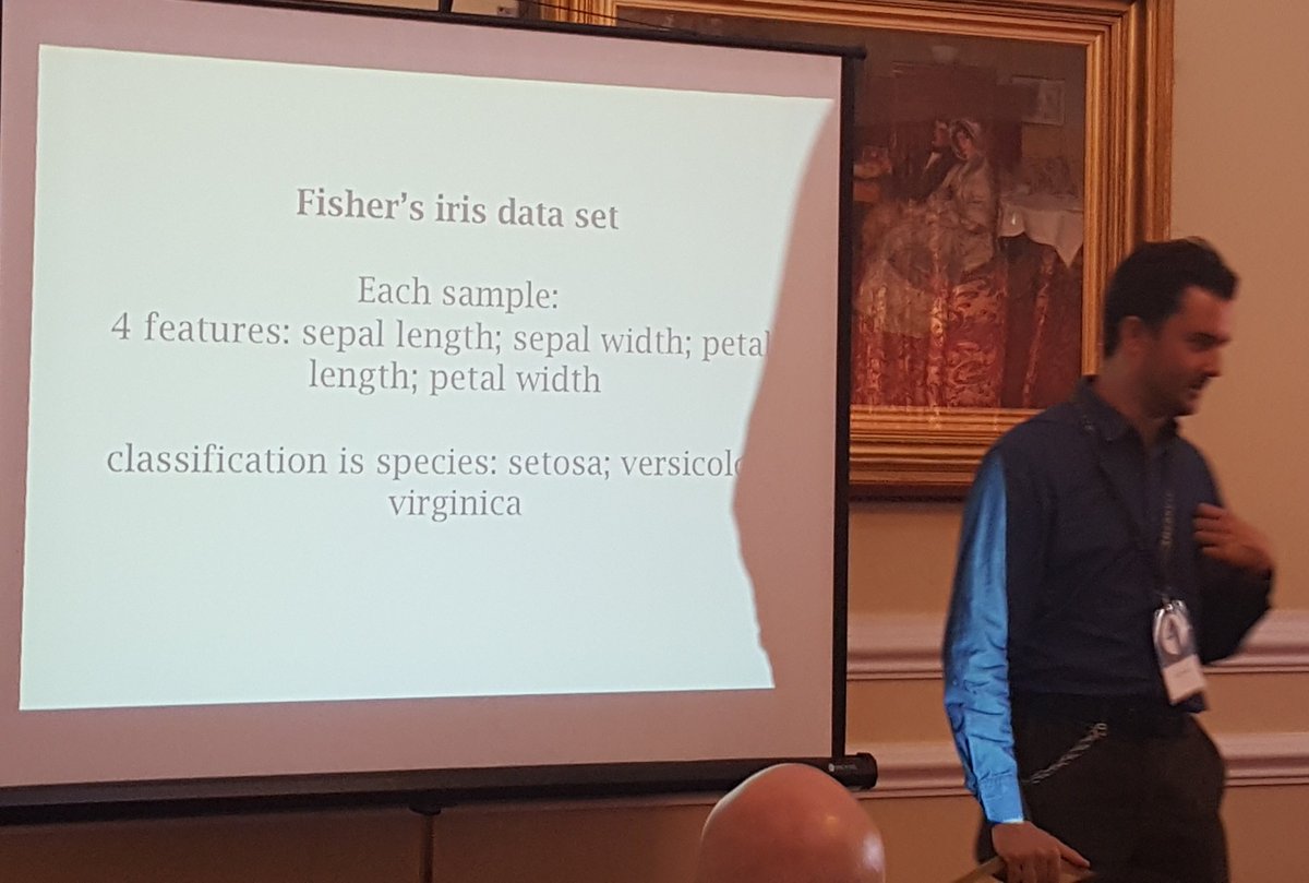 Classic machine learning example; classifying iris cultivars/varieties #PyConUK @Brittix1023pic.twitter.com/ExOp6xw49S