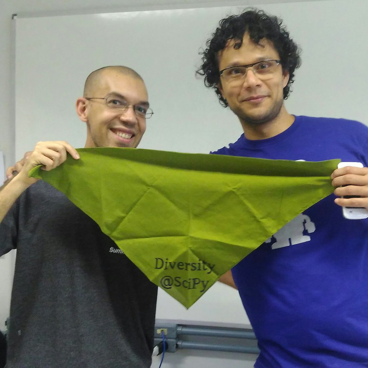 .@WillingCarol Thanks very much for the #diversity @SciPyConf swag delivery by @ocefpaf. 💙 cc @o_guest @drvinceknightpic.twitter.com/eH5bJ9YTLR