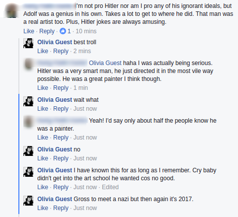 Also like there are three things most people know about Hitler: Nazi, painter, vegetarian. Even though he was not a proper veggie.