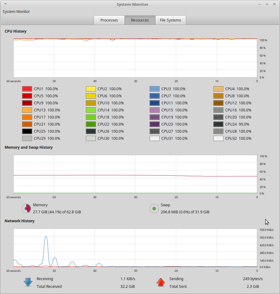 Something definitely wrong, if this is Big Data™ then all 32 processors should be 100% all of the time. :-)