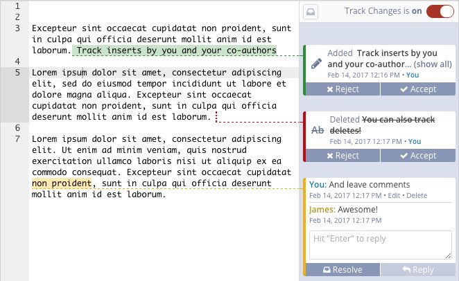 You can now track changes and comment in LaTeX with ShareLaTeX! https://www.sharelatex.com/track-changes-and-comments-in-latex …pic.twitter.com/P2oq2NAQkV