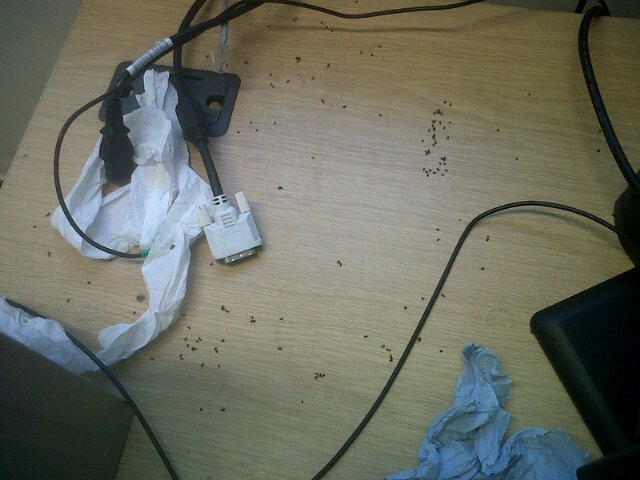 Come into work to find my desk covered in dead ants. But they are all clustering around my computer cable... Why?pic.twitter.com/TGup8bjrku