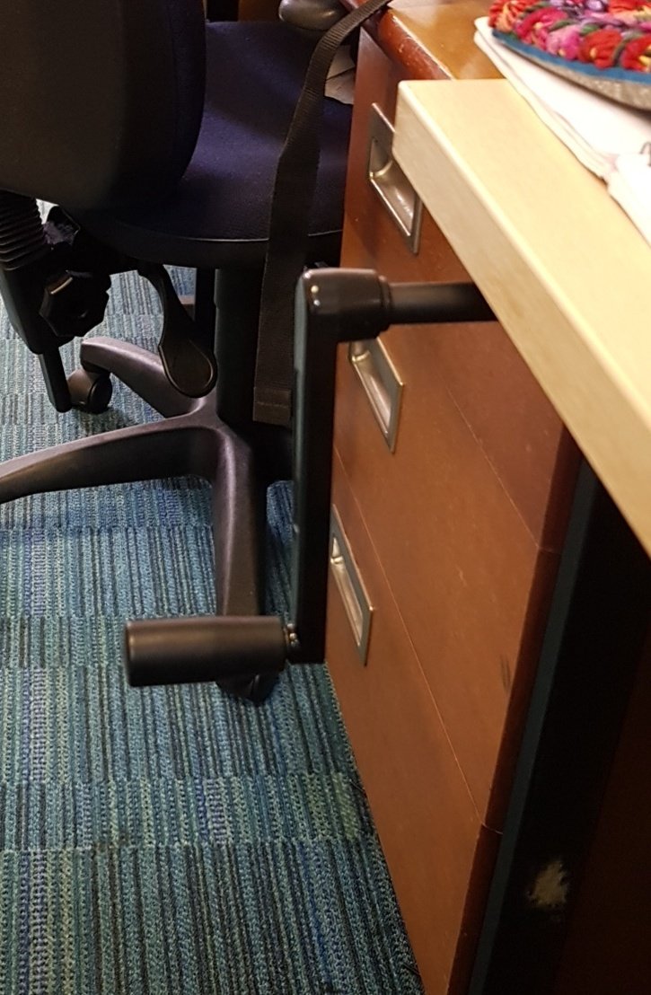 Dramatic irony: my desk is a standing desk. It has a thing that makes it into one.
