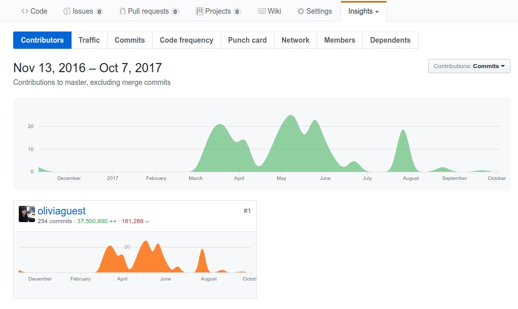 Project is almost done and ready to go public! Maybe some time next week. Looking back, it's nice to be able to see the stats on it.