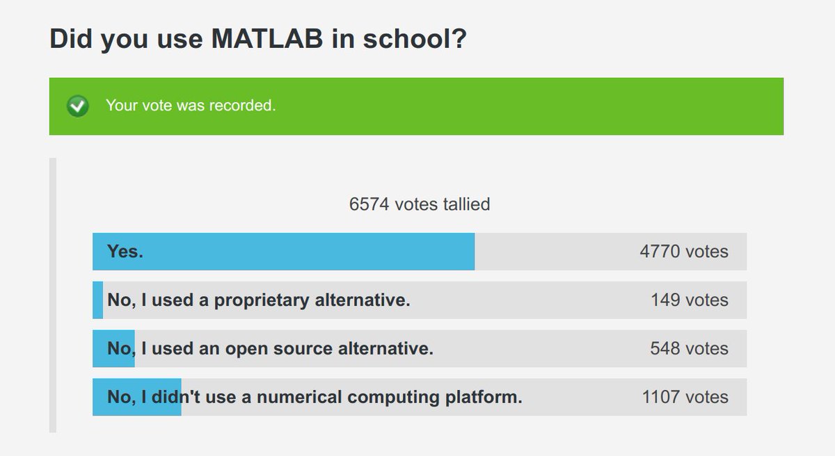 Did you use MATLAB in school? Unfortunately (and shamed), yes. :-( @o_guest @dralexjaguar help our students. https://opensource.com/alternatives/matlab …pic.twitter.com/sUJH8Cg9F1