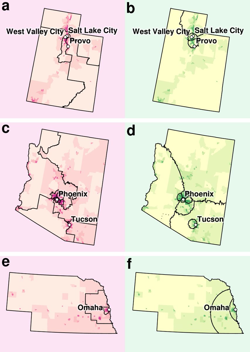 Omaha, Nebraska has it's own district (e) and then increasingly suburban areas have theires, and then rural theirs. Which is THE SAME as our algo (f) did just more smoothly.