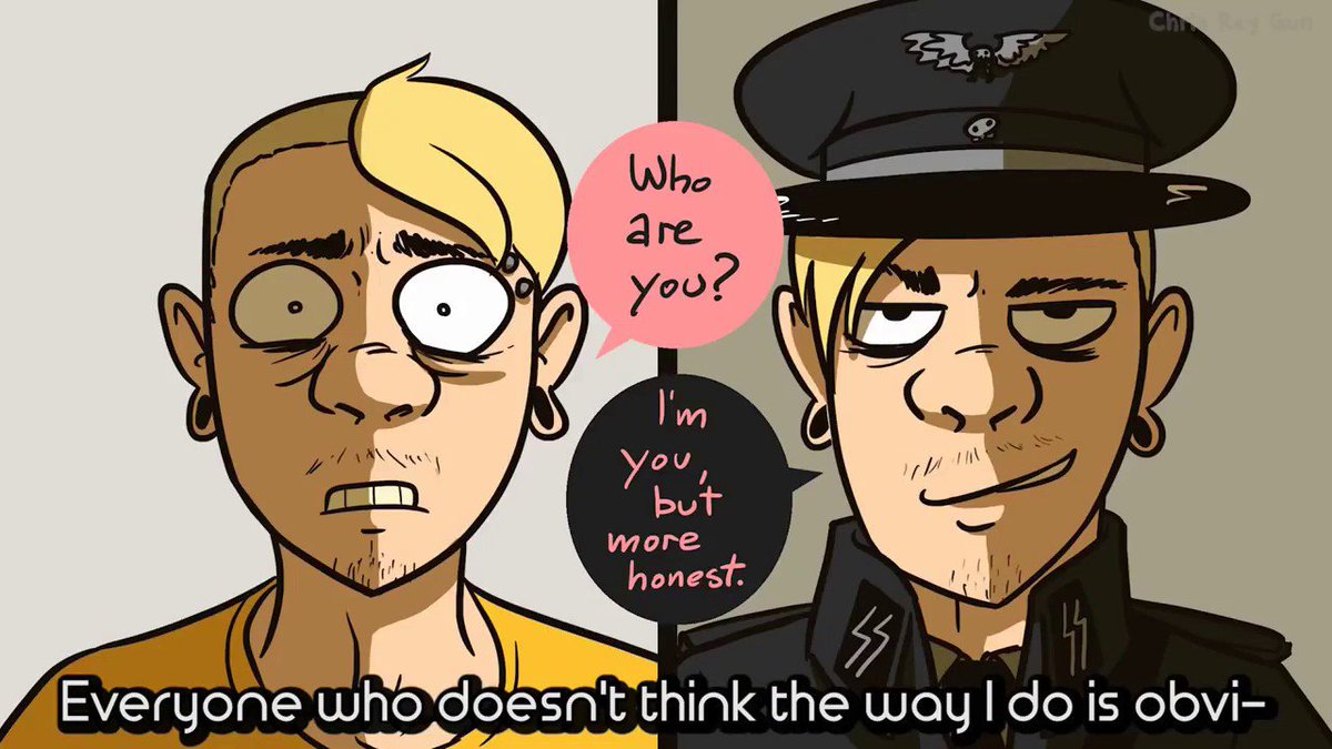 Does anyone have that nazi meme where a guy is looking at someone who looks just like him, but is wearing an SS uniform? He asks "Who are you?" and the response is "I'm you, but honest"? I need that image, but can't find it. My google-fu is failing me