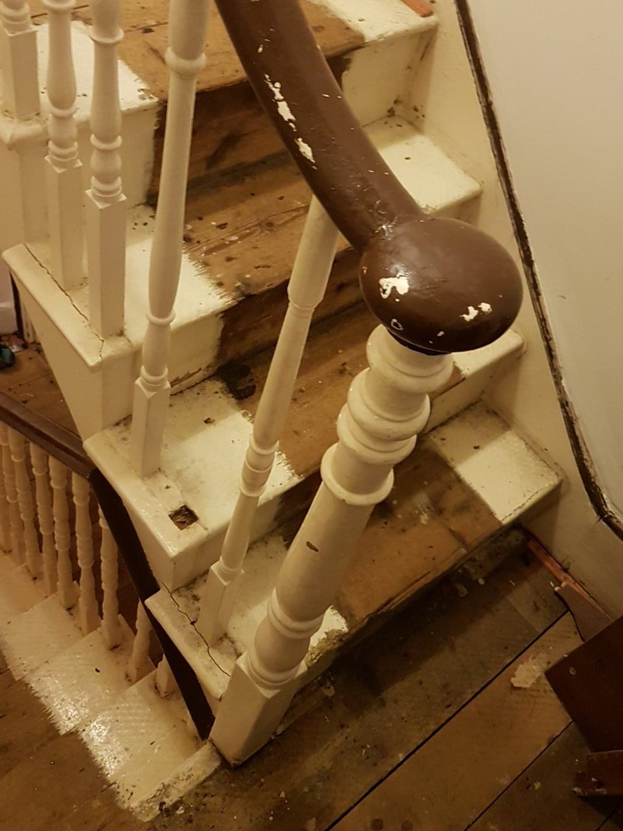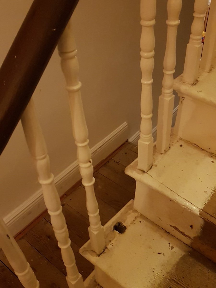 Living here has been tough. The stairs are representative of the rest. I see shows on TV where the person is supposed to be poor and I think "wow, nice house". We had a mushroom growing in our bathroom once. And as you know, rats.