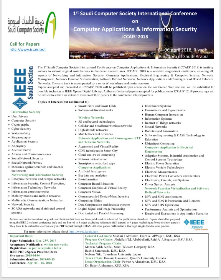@SaudiComputer للمشاركة في المؤتمرين التاليين: ١- http://www.scs-ncc.tech 2- http://www.iccais.tech .#أمن_المعلوماتpic.twitter.com/8hnuFED6ch