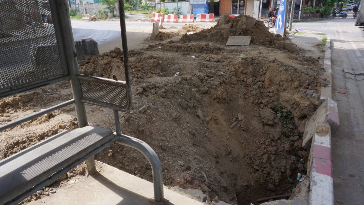 ถนนสวนผักจุดตัดเข้าถนนราชพฤกษ์ ที่เห็นนี่คือข้างป้ายรอรถโดยสารฯ ระยะเวลาเป็นเดือนแล้วครับต้องให้มีเหตุก่อนหรือ?