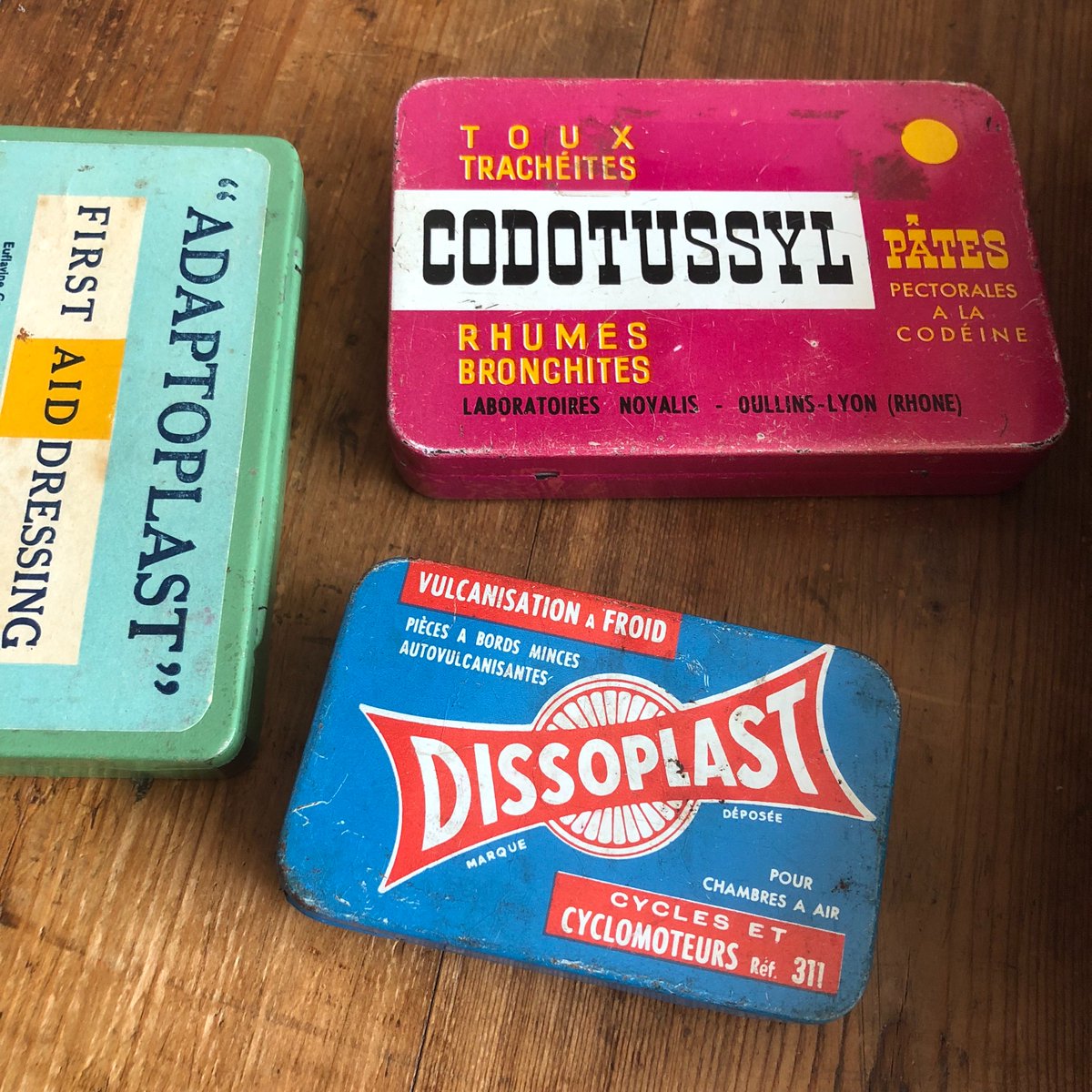 When I go to a flee market I like to look for those old colorful boxes which I use to stash little things. Got the blue one yesterday “Dissoplast- pièces a bords minces autovulcanisantes”.pic.twitter.com/id3zME7TbF