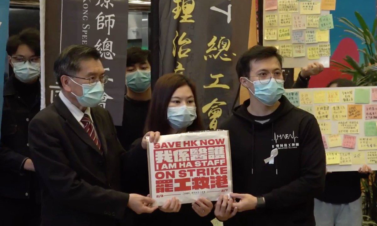 Hong Kong medical workers striking to demand closing border with China http://hill.cm/6UUsAMc pic.twitter.com/houZZfZu6R