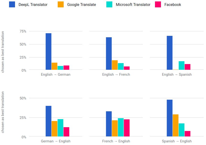 Out of nowhere: https://www.deepl.com/translator.html far better translator than Google. Begs the question: Can Google be overtaken in search too?