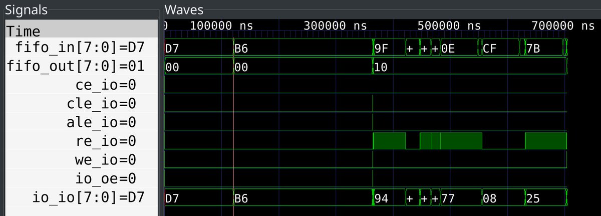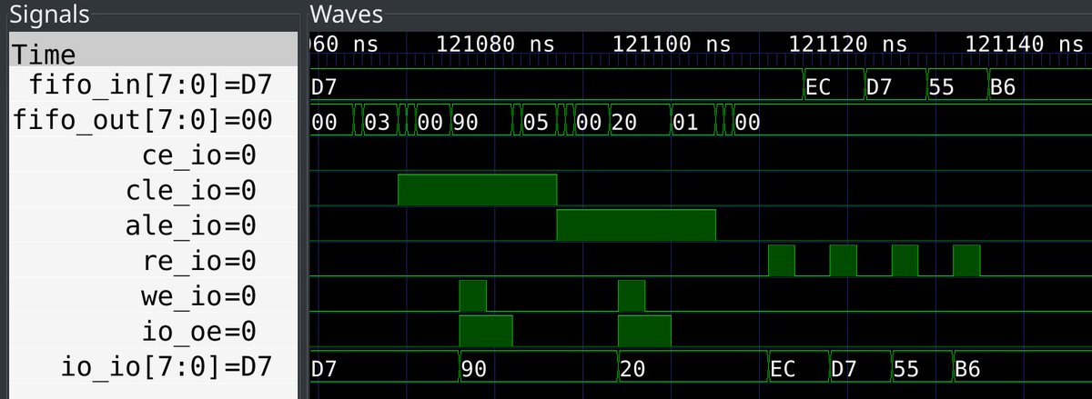 i was stuck in anxiety land so i implemented an event analyzer for Glasgow here is a cycle-accurate trace of real-world use case, an applet identifying a NAND flash. you can see the applet receiving commands and sending data via its USB FIFO. to reiterate: this was captured live!pic.twitter.com/NTPHcDOafo