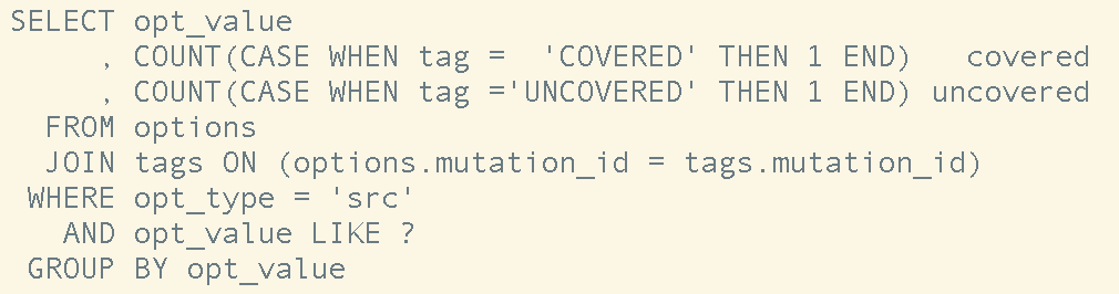 Basically this. Details depend on the data model an your expecatations. E.g. this query does not contain opt_values where not a single row in tags exists. If you prefer "0" in the case, use a LEFT JOIN. Caps => keywords (monochrome syntax highlighting).pic.twitter.com/uRqH6lkWhe